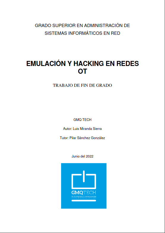 El 21 del 06 del 2022 tuvo lugar la presentación de mi TFG sobre la emulación y hacking en redes ot, donde explico como desplegar y emular en la red un PLC y un SCADA opensource usando los softwares OpenPLC y SCADABR. El TFG culmina con una demostración de ataque en un entorno controlado.