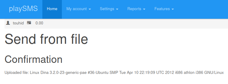 La contraseña era diana, dándonos acceso al panel del usuario touhid, una vez aquí podemos estudiar los diferentes vectores de ataque que tiene playSMS, toca googlear. Investigando sobre playSMS encontré diferentes vías de ataque que te daban acceso directo a la máquina con sus respectivos modulos en Metasploit, pero en mi opinión pierde un poco la gracia, por lo que seguí investigando hasta que di con este exploit:
