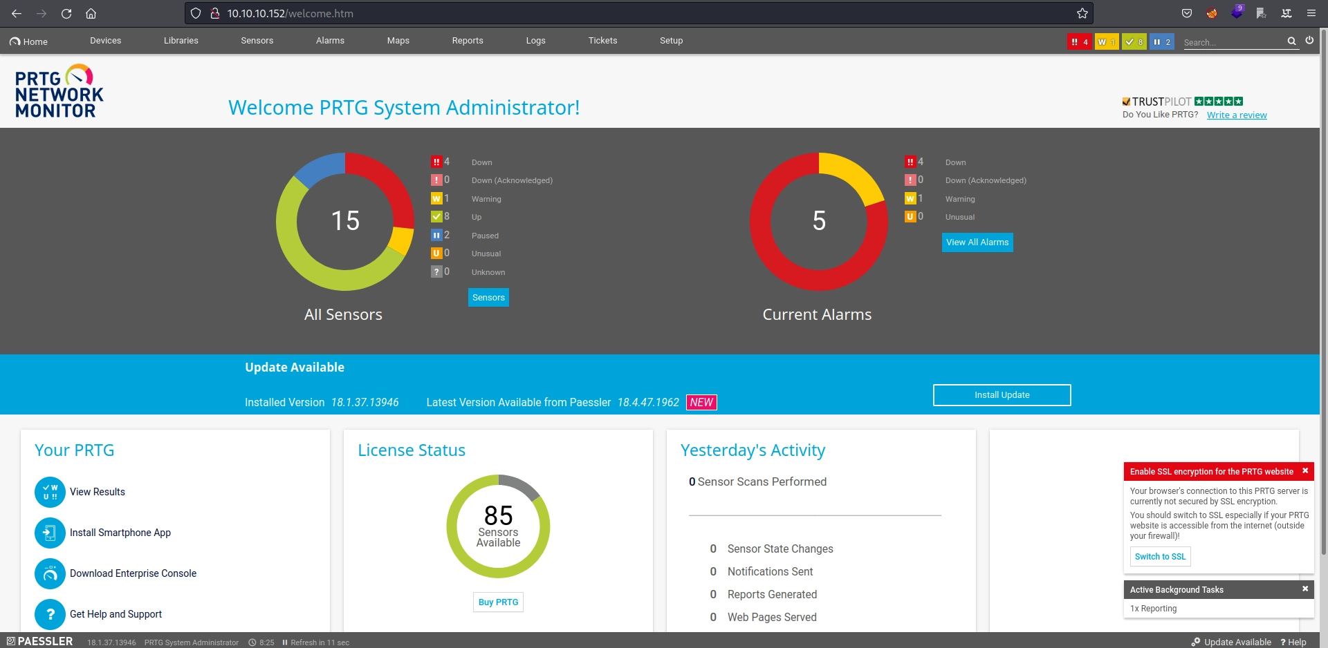 La página web ubicada en 10.10.10.152:80 nos muestra un login de una aplicación web llamada PRTG NETWORK MONITOR.